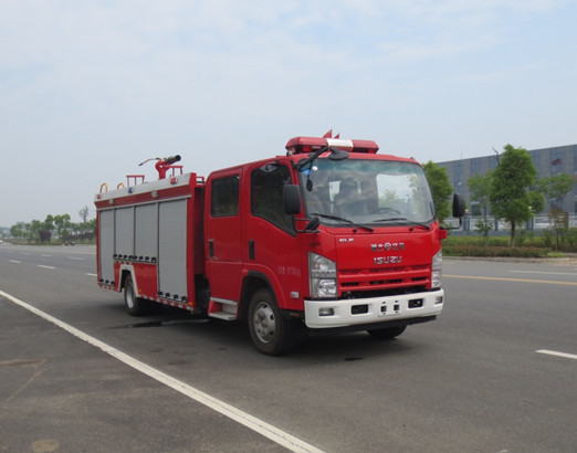 J5070GXFSG20/Q6型水罐消防车,采用庆铃QL1070BUKWY底盘改装而成。整车由消防员乘员室和车身两大部分组成,乘员室为原装双排,可乘坐2+3人,该车为内仓罐结构,车身前部为水罐+器材箱,后部为泵房。载液罐体为忧质碳钢,与底盘采用弹性连接,载水1850kg(容积醉大可做3000kg),装备了上海雄真消防设备有限公司生产CB10/30-XZ型消防泵,额定流量30L/S,车顶安装成都威斯特消防机械有限公司生产的PS30W型车用消防炮。该车辆结构紧凑,配置完备,机动性强,能够及时应对企业,社区或种点消防单位的火情,可以及时时间形成小型战斗力进行初期火灾的扑救和人员疏散撤离。可广泛应用于消防救援站,消防队,企业专职消防队等。